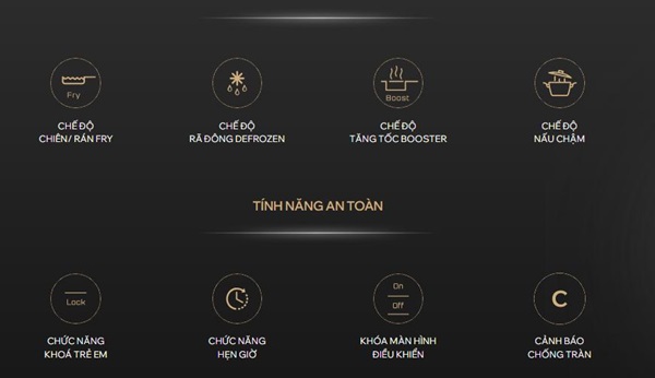 Tích hợp tính năng tự ngắt khi quá nhiệt, quá tải và cảnh báo chống tràn thông minh. Khi phát hiện chất lỏng tràn vào bảng điều khiển, bếp sẽ tự động dừng hoạt động để bảo vệ bo mạch bên trong.