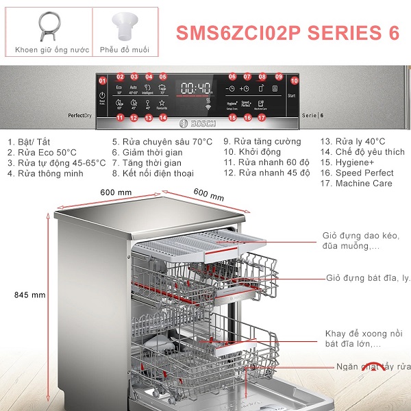 Máy rửa bát độc lập Bosch SMS6ZCI02P | Giá: 19.500.000  (giảm 29%)