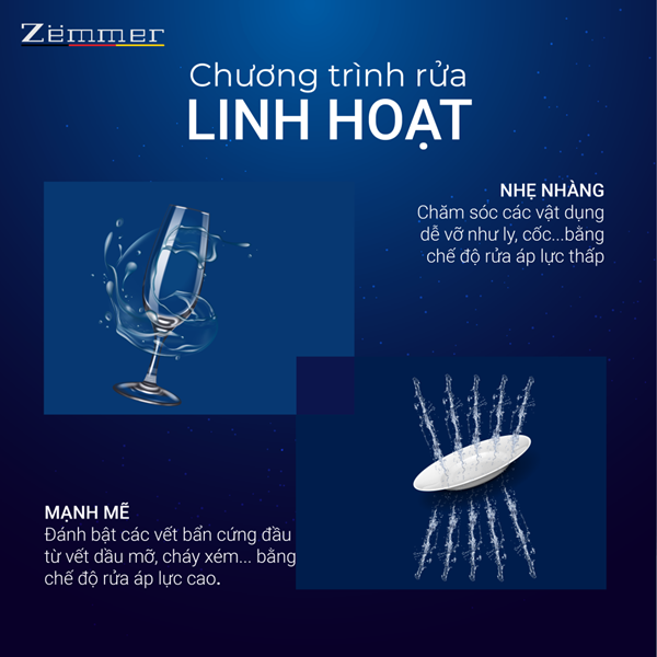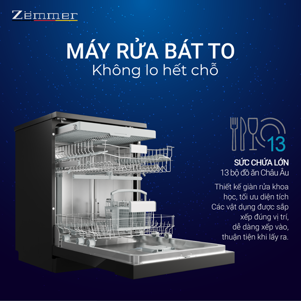 – Máy rửa bát Zemmer nổi tiếng về chất lượng, độ bền và tiết kiệm điện, đa chức năng rửa chén bát, là trợ thủ đắc lực cho chị em phụ nữ, ngoài ra nó còn là sản phẩm trang trí cho không gian bếp thêm phần hiện đại sang trọng.