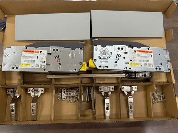 Cơ cấu nâng và bas bắt mặt tủ đối xứng nên bên trái và bên phải đều như nhau.